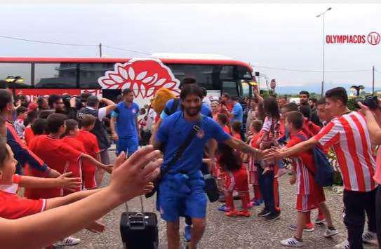 Για μια ακόμη χρονιά ο Ολυμπιακός αποθεώθηκε από τους φίλου του, που βρέθηκαν στο σημείο για να υποδεχθούν τους πρωταθλητές Ελλάδας.
