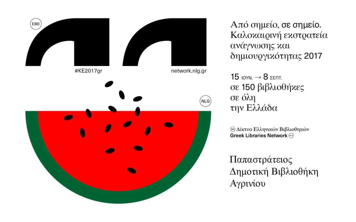 Η Καλοκαιρινή Εκστρατεία Ανάγνωσης και Δημιουργικότητας 2017 διοργανώνεται από την Εθνική Βιβλιοθήκη της Ελλάδος και υλοποιείται χάρη στη συνεργασία εκατοντάδων βιβλιοθηκονόμων, εκπαιδευτικών και εθελοντών σε όλη την Ελλάδα.