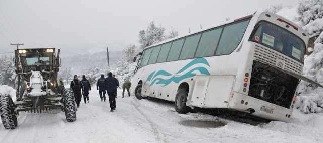 Παρά τις προσπάθειες του οδηγού του πρώτου πρωινού λεωφορείου για Τρύφου δεν κατάφερε να ανέβει στο χωριό και τον πέταξε εκτός δρόμου. Χρειάστηκε μάλιστα και την βοήθεια μηχανήματος να κάνει διάνοιξη έτσι ώστε να μπορέσει να γυρίσει πίσω.