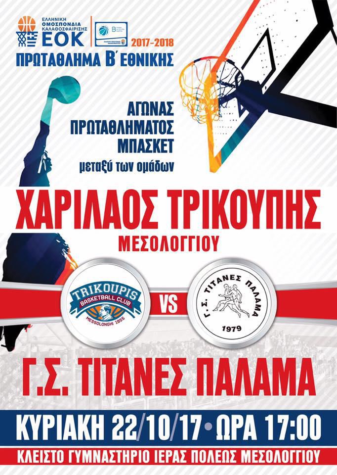 Για την 3η αγωνιστική της Β´Εθνικής η ομάδα, Χαρίλαος Τρικούπης Μεσολογγίου, η οποία ξεκίνησε το φετινό πρωτάθλημα με 2/2 νίκες υποδέχεται τους Τιτάνες Παλαμά με αποκλειστικό στόχο τη συνέχιση των νικηφόρων αποτελεσμάτων.