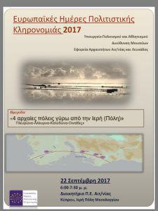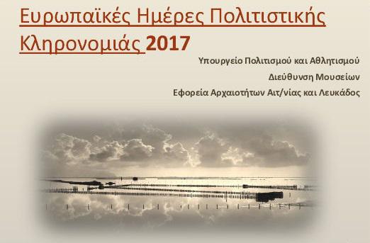 Η Εφορεία Αρχαιοτήτων Αιτ/νίας και Λευκάδος συμμετέχει και φέτος στον εορτασμό των Ευρωπαϊκών Ημερών Πολιτιστικής Κληρονομιάς της Διεύθυνσης Μουσείων του Υπουργείου Πολιτισμού και Αθλητισμού, με θέμα «ΠΟΛ(Ε)ΙΣ», διοργανώνοντας εκδηλώσεις: