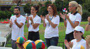 Φωτό Νο4 Επευφημίες για τους Μικρούς Ροβινσώνες, από τον Θανάση Βισκαδουράκη, την Άννα Μπουσδούκου, την Μαρία Κουμαριανού υπεύθυνη χορηγιών των «Μικρών Ροβινσώνων», την Κατερίνα Καινούργιου και την Αλεξάνδρα Ούστα