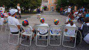 Φωτό Νο 1 H Πρόεδρος της ΕΛΕΠΑΠ κυρία Μαριάννα Μόσχου, καλωσορίζει παιδιά, γονείς και φίλους στο «Κυνήγι του Χαμένου Θησαυρού» στην Πλατεία Κλαυθμώνος