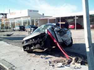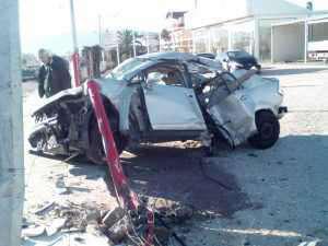 Το τροχαίο σημειώθηκε στις 9 το πρωί σε παράδρομο της Ε.Ο, λίγο μετά από το ΚΤΕΛ Αιτ/νίας. Για άγνωστους λόγους το όχημα εξετράπη της πορείας του και προσέκρουσε σε μεταλλικό στύλο.Στο σημείο του ατυχήματος άμεσα έσπευσαν Πυροσβεστική και το ΕΚΑΒ καθώς και η τροχαία, η οποία διεξάγει έρευνες για τα ακριβή αίτια του τροχαίου!