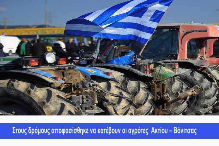 - Την ερχόμενη Δευτέρα, 23 Ιανουαρίου, κατεβάζουν τα τρακτέρ τους στους δρόμους οι αγρότες από τον Αγροτικό Σύλλογο Κατούνας και απο τον Αγροτοκτηνοτροφικό Σύλλογο Ακτίου – Βόνιτσας , διαμαρτυρόμενοι για το ασφαλιστικό και το φορολογικό.Το ραντεβού κλείστηκε για τις 12 το μεσημέρι στην Τράπεζα Πειραιώς (πρώην Αγροτική) στη Βόνιτσα, ενώ οι μορφές των κινητοποιήσεων δεν έχουν καθοριστεί ακριβώς, όμως σύμφωνα με πληροφορίες γίνεται συζήτηση για μηχανοκίνητη πορεία (τρακτερ, κλπ) ενώ υπάρχουν προτάσεις και για μπλόκα !