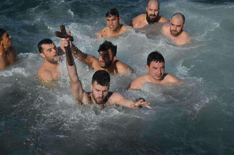 Αρκετοί νέοι βούτηξαν στα παγωμένα νερά για να πιάσουν τον Σταυρό. Ο νέος που ανέσυρε τον Σταυρό έλαβε από το Σεβασμιώτατο ως ευλογία ένα μικρό ενθύμιο κι έναν χρυσό Σταυρό, τον οποίο θα φέρει στο στήθος του και θα του δίνει δύναμη στη καθημερινότητά του. Ο Λιμενάρχης Μεσολογγίου προσέφερε στο νέο μια εικόνα της Βαπτίσεως, ενώ ο Σεβασμιώτατος σε όλους όσους βούτηξαν στη θάλασσα προσέφερε ένα μικρό ενθύμιο ως ευλογία για την μεγάλη ημέρα των Θεοφανείων