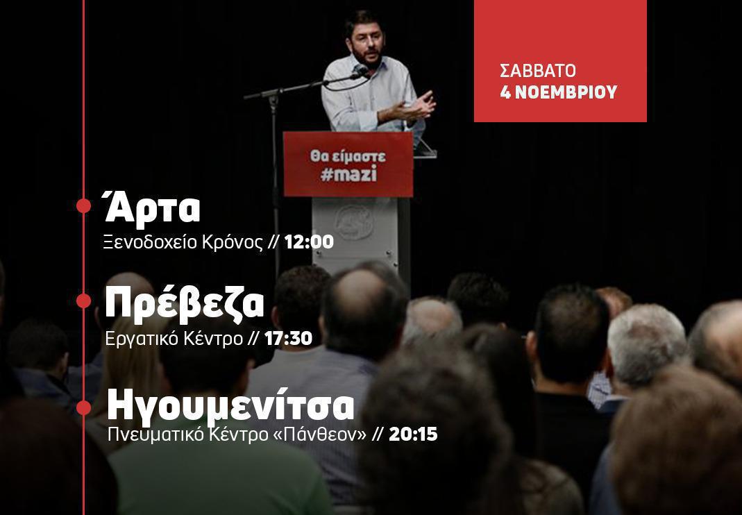 Περιοδεία στην Ήπειρο, και συγκεκριμένα σε Αρτα, Πρέβεζα, Ηγουμενίτσα και Ιωάννινα, πραγματοποιεί το Σαββατοκύριακο 4 και 5 Νοεμβρίου ο Νίκος Ανδρουλάκης. Ο ευρωβουλευτής του ΠΑΣΟΚ και υποψήφιος για την ηγεσία της ενιαίας προοδευτικής παράταξης θα πραγματοποιήσει συνεντεύξεις τύπου και ομιλίες.