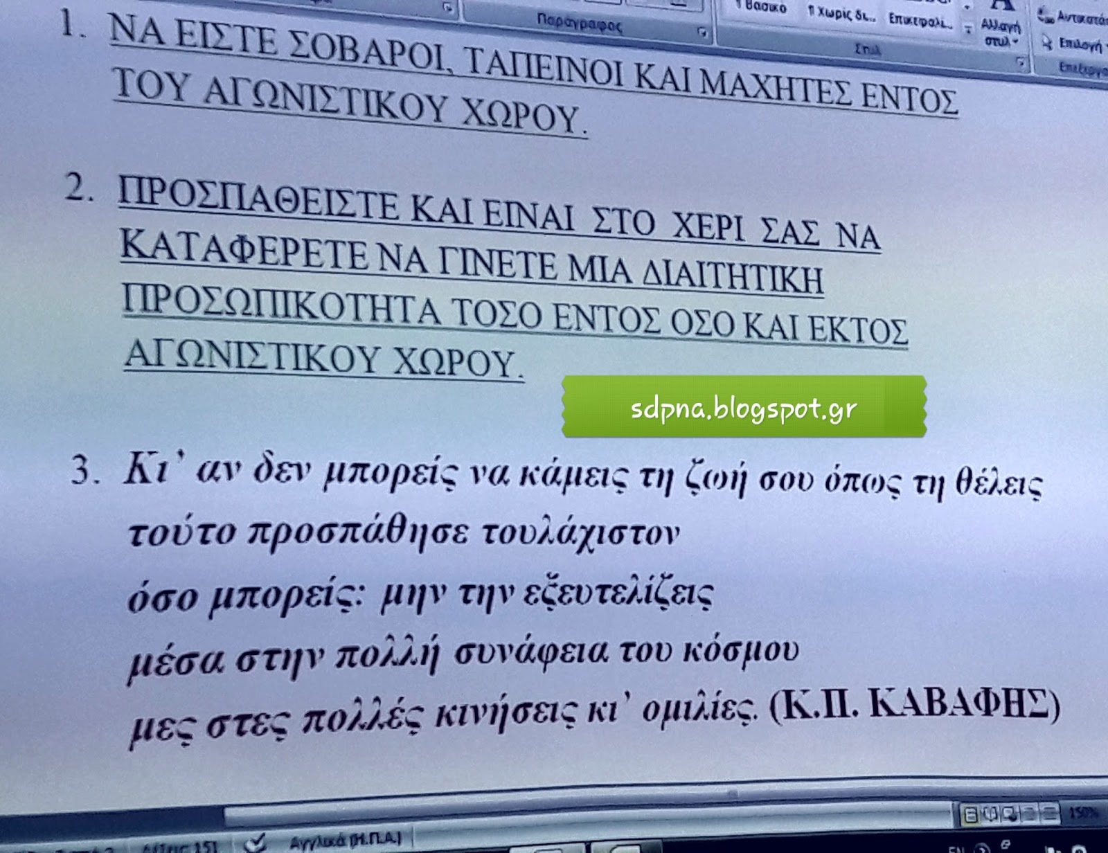 ενώ ολοκλήρωσε την εισήγησή του με ένα γνωστό απόφθεγμα (φωτο) του Κ.Π. ΚΑΒΑΦΗ.