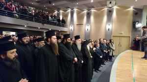 Στην κατάμεστη από εκπαιδευτικούς, γονείς και φιλοαγιορείτες, αίθουσα του Παπαστρατείου Μεγάρου της Γυμναστικής Εταιρείας Αγρινίου πραγματοποιήθηκε, την Δευτέρα 30 Ιανουαρίου 2017 το απόγευμα, η εορταστική εκδήλωση προς τιμήν των Αγίων Τριών Ιεραρχών προστατών των Ελληνικών Γραμμάτων, που συνδιοργάνωσαν η Ιερά Μητρόπολις Αιτωλίας και Ακαρνανίας και το τοπικό παράρτημα Νομού Αιτωλοακαρνανίας της Πανελληνίου Ενώσεως Θεολόγων (Π.Ε.Θ.).