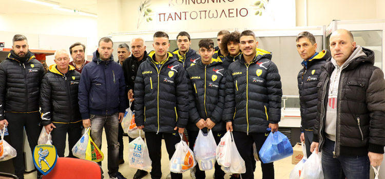 Οι ποδοσφαιριστές των Τμημάτων Υποδομής του Παναιτωλικού συγκέντρωσαν τρόφιμα τα οποία παρέδωσαν σήμερα στο Κοινωνικό Παντοπωλείο του Δήμου Αγρινίου, όπου τους υποδέχτηκε ο αντιδήμαρχος Κώστας Καλαντζής. Το μέλος του Δ.Σ. της ΠΑΕ Κώστας Γιωτόπουλος, ο υπεύθυνος των Τμημάτων Υποδομής Γιάννης Ντακαλούρας, ο γενικός αρχηγός Κώστας Κωνσταντόπουλος, οι προπονητές Γιώργος Ταράσης, Δημήτρης Θεοδοσίου, Χρήστος Ζαπάντης, Αλέξανδρος Ρήγας, συνόδευσαν τους ποδοσφαιριστές Σπύρο Γεωργούση, Θόδωρο Δαράβαλη, Δημήτρη Θεοδωρόπουλο, Μάκη Μπακαδήμα, Στάθη Μπελεβώνη, Γιάννη Πριόνα, οι οποίοι πέραν της ουσιαστικής προσφοράς με την ενίσχυση του έργου του Κοινωνικού Παντοπωλείου με τρόφιμα, θέλησαν να στείλουν μήνυμα αλληλεγγύης στον συνάνθρωπο τούτες τις γιορτινές μέρες.