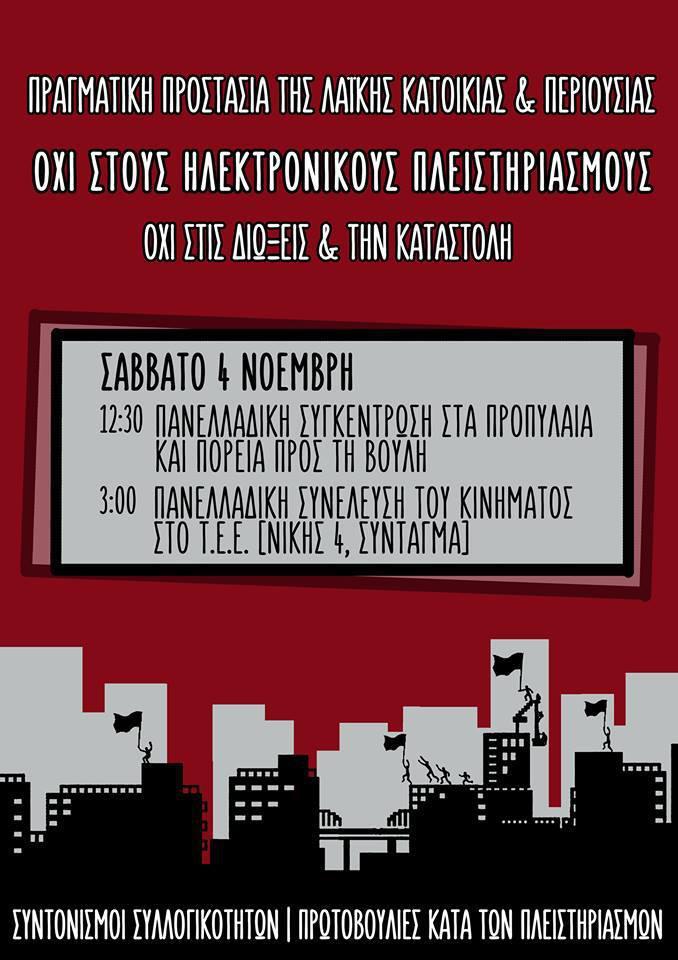 Κινήσεις γειτονιάς, συντονισμοί συλλογικοτήτων και πρωτοβουλίες κατά των πλειστηριασμών από όλη την Ελλάδα αγωνιζόμαστε και διεκδικούμε: