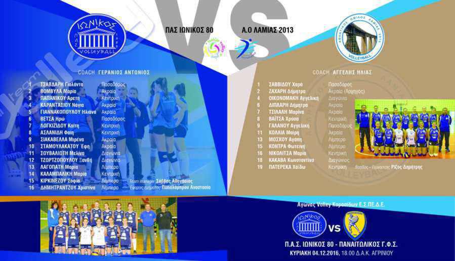 «Στηρίξτε την ομάδα της  πόλης μας» αναφέρει σε ανακοίνωσή του ο ΠΑΣ Ιωνικός 80, για τον αγώνα  βόλεϊ, ο οποίος  θα διεξαχθεί το Σάββατο 3/12 στο ΔΑΚ Αγρινίου και ώρα 18:00, μεταξύ του ΠΑΣ Ιωνικός 80 και του Α.Ο. Λαμίας.Ο Ιωνικός καλεί επίσης το φίλαθλο κοινό του Αγρινίου να στηρίξει «το volley της πόλης μας», στον αγώνα Volley Κορασίδων Ε.Σ.ΠΕ.Δ.Ε, μεταξύ του ΠΑΣ Ιωνικός 80 και του Παναιτωλικός Γ.Φ.Σ. , που θα διεξαχθεί την Κυριακή 4/12 στο ΔΑΚ Αγρινίου στις 6 το απόγευμα.