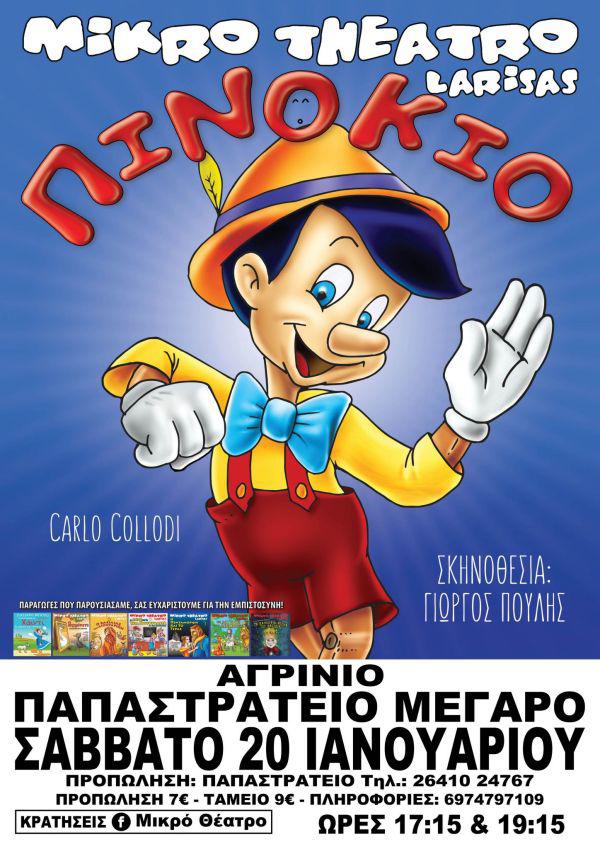 Η πασίγνωστη ιστορία του Πινόκιο. Σε μια θεατρική μεταφορά από το Μικρό Θέατρο Λάρισας. Ο Πινόκιο είναι ο ήρωας που αντιπροσωπεύει όλους τους ανθρώπους. Από την ελεύθερη βούληση και την ανεξαρτησία που του χαρίζεται, καλείται να αποδείξει πως τίποτα δεν κερδίζεται χωρίς κόπο. Μέσα από τις διάφορες “προκλήσεις” που συναντά στον δρόμο του, ο μικρός μας φίλος, πρέπει να καταφέρει να κερδίσει το στοίχημα της ζωής. Οι αστείες καταστάσεις και οι περιπέτειες στην καθημερινότητα του, τον οδηγούν στην απόδειξη πως μόνο με απόλυτη εσωτερική δύναμη γίνονται όλα πραγματικότητα.