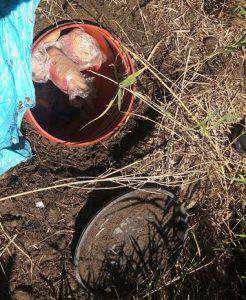 Επίσης από την έρευνα, στη καβάνζτα των δραστών, βρέθηκε θαμμένη στο έδαφος μια πλαστική λίμπα, όγκου ογδόντα λίτρων, στην οποία οι δράστες είχαν κρύψει δεκαοκτώ νάιλον συσκευασίες κάνναβης, συνολικού βάρους 17.179 γραμμαρίων.