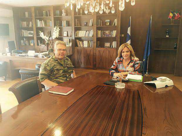 Εθιμοτυπική επίσκεψη πραγματοποίησε σήμερα στο γραφείο της Αντιπεριφερειάρχη Π.Ε. Αιτωλοακαρνανίας, κ. Χριστίνας Σταρακά, ο νέος διοικητής του Στρατοπέδου του 2/39 Συντάγματος Ευζώνων στην Ιερά Πόλη Μεσολογγίου, Συνταγματάρχης Πεζικού Δημήτριος Σπύρου.