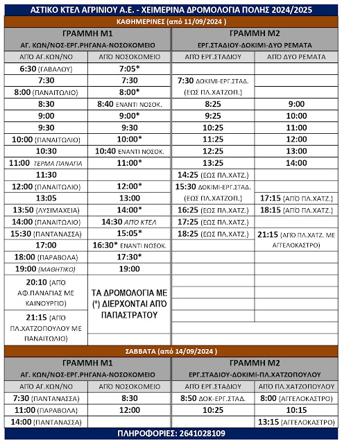Τα δρομολόγια του Αστικού ΚΤΕΛ Αγρινίου από 8-1-2025