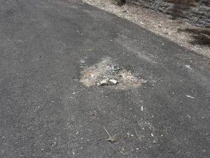 Βέβαια αυτό αποτελεί πταίσμα μπροστά στα υπόλοιπα που διαπιστώσαμε στη σημερινή μεσημεριανή μας επίσκεψη στο χώρο της παράστασης…Βεβαίως ο χώρος καθαρίστηκε ελαφρώς όμως διαπιστώσαμε ότι η ασφαλτόστρωση του συγκεκριμένου χώρου έχει υποστεί φθορές και λακκούβες, έστω κι αν έχουν περάσει μόλις 10 μήνες, από την υλοποίηση του έργου!