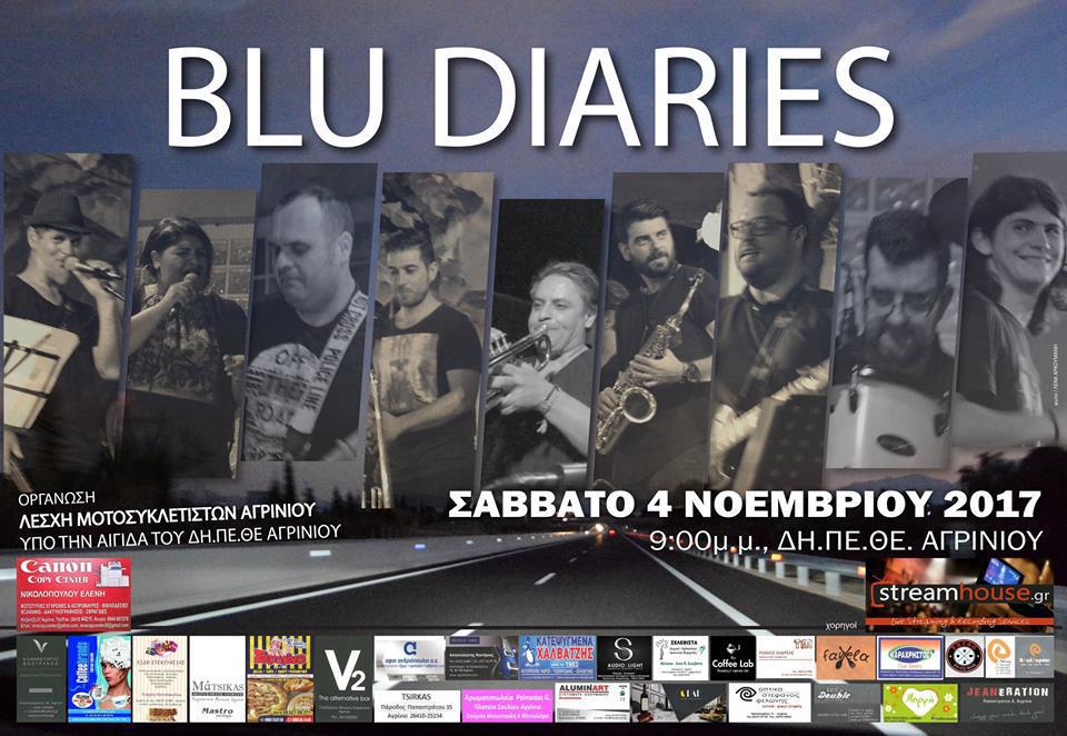 Οι“Blu DIARIES the Band” είναι μια 8μελης Αγρινιώτικη μπάντα διασκευών rock, blues, funk, soul με τις εμφανίσεις τους στην πόλη του Αγρινίου και όχι μόνο, ταξιδεύουν με τους ήχους τους το κοινό σε διάφορες μουσικές δεκαετίες.