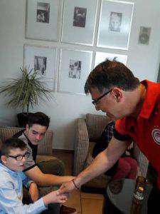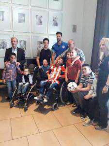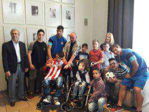 Η παράδοση έγινε την Κυριακή 30/04/2017 στο ξενοδοχείο που διέμεινε η ομάδα από τον αντιπρόεδρο της ομάδας κ. Σάββα Θεοδωρίδη, τον προπονητή κ. Τάκη Λεμονή και τους παίχτες του Ολυμπιακού στα παιδιά της ΕΛΕΠΑΠ Αγρινίου που συνοδεύονταν από τους γονείς τους, τον Αντιπρόεδρο της Τ.Δ.Ε. ΕΛΕΠΑΠ κ. Δημοκράτη Περίδη και την φυσικοθεραπεύτρια του κέντρου κ. Δήμητρα Τσούνη.