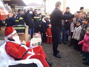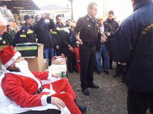 Άφησε στην άκρη το έλκηθρο ο Άγιος Βασίλης, ανέβηκε σε ένα πυροσβεστικό όχημα βραχυονοφόρο και από εκεί ψηλά χαιρετούσε τα παιδιά των πυροσβεστών που είχαν συγκεντρωθεί στον προαύλιο χώρο. Την άφιξη του Άγιου Βασίλη ανήγγειλε ο διοικητής της Π.Υ Αγρινίου κ. Χριστόφορος Μπόκας ο οποίος αφού άκουσε με όλους τους Πυροσβέστες τα κάλαντα από τα παιδιά ευχήθηκε καλή, δημιουργική και με λιγότερα τραγικά συμβάντα, χρονιά.