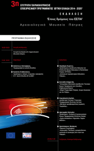Η εκδήλωση θα πραγματοποιηθεί στο πλαίσιο της 3ης  Επιτροπής Παρακολούθησης του Επιχειρησιακού Προγράμματος «Δυτική Ελλάδα 2014-2020» και οργανώνεται με την υποστήριξη του Υπουργείου Πολιτισμού και Αθλητισμού.