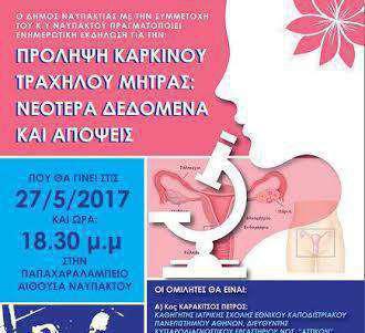 Ο δήμος Ναυπακτίας με την συμμετοχή του Κ.Υ. Ναυπάκτου πραγματοποιεί ενημερωτική εκδήλωση για την: «Πρόληψη Καρκίνου Τράχηλου της Μήτρας: Νεότερα Δεδομένα και Απόψεις».