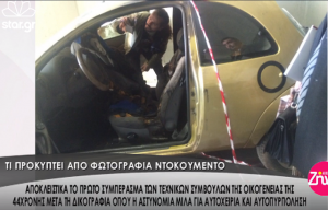 Η ρεπόρτερ της εκπομπής, Γιώτα Κηπουρού, συνομίλησε με έναν από τους τεχνικούς πραγματογνώμονες που έχει διορίσει η οικογένεια της 44χρονης, ο οποίος της είπε πως μελετώντας την έκθεση αυτοψίας της αστυνομίας και τις φωτογραφίες του αυτοκινήτου μέσα στο οποίο βρέθηκε νεκρή η άτυχη γυναίκα, καταλήγει στο συμπέρασμα η πόρτα του οδηγού ήταν ανοιχτή όσο ήταν σε εξέλιξη η φωτιά.