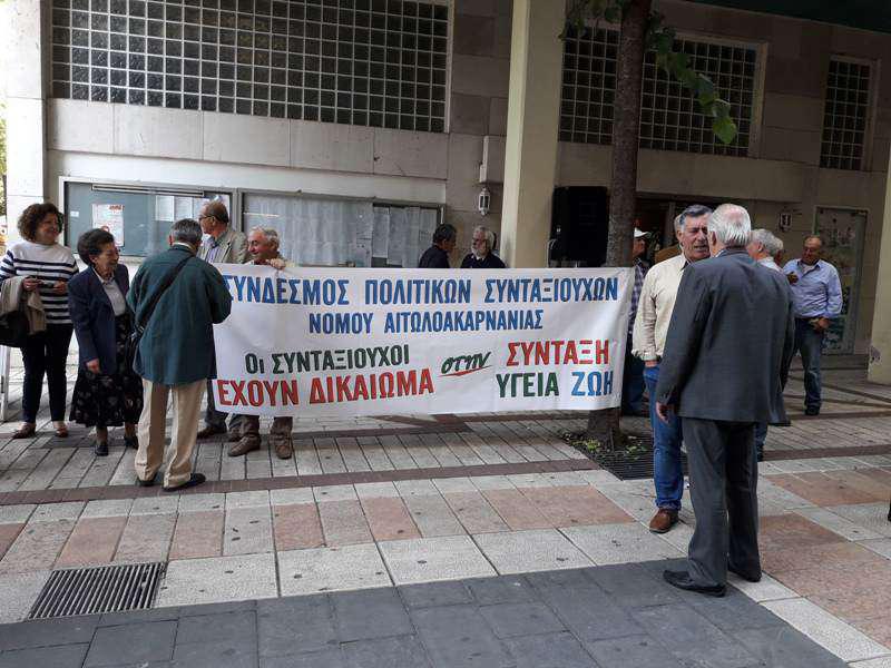 Με διαδήλωση στον Πεζόδρομο της Χ.Τρικούπη καταδίκασαν οι συνταξιούχοι του Αγρινίου τα νέα μέτρα παρουσία των Πρόεδρων της Ομοσπονδίας του ΙΚΑ κ.Δήμ. Κουμπούρη και της Ομοσπονδίας Συνταξιούχων του Ο.Α.Ε.Ε κ.Παντελή Τάτση.«Τα μέτρα είναι θανατηφόρα. Οι αγώνες μας πρέπει να είναι μαζικοί, αποφασιστικοί», είπε ο Δήμος Κουμπούρης στην χθεσινή συνέντευξη τύπου. Την κινητοποίηση άνοιξαν με σύντομους χαιρετισμούς εκπρόσωποι των συνταξιουχικών οργανώσεων.
