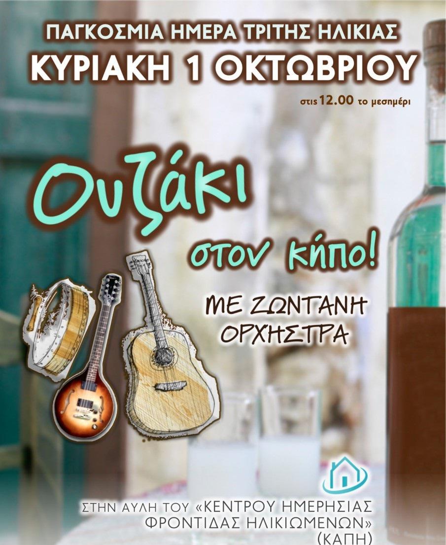Με γιορτινή διάθεση θα τιμηθεί την προσεχή Κυριακή 1 Οκτωβρίου 2017 στο ΚΑΠΗ Μεσολογγίου, η Παγκόσμια Ημέρα Τρίτης Ηλικίας.