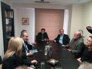 Κατά την επίσκεψή τους στο Επιμελητήριο Αιτωλοακαρνανίας, ο Περιφερειάρχης συνοδευόταν από την Αντιπεριφερειάρχη ΠΕ Αιτωλοακαρνανίας Χριστίνα Σταρακά, τον Αντιπεριφερειάρχη Περιφερειακής Ανάπτυξης και Επιχιερηματικότητας Κώστα Καρπέτα και τον Αντιπεριφερειάρχη Υποδομών και Δικτύων Γιάννη Λύτρα.