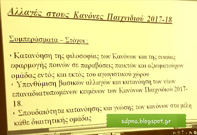Ο παλαίμαχος διαιτητής Super League, κάνοντας χρήση των σύγχρονων οπτικοακουστικών μέσων της κεντρικής αίθουσας του Συνδέσμου Διαιτητών Ποδοσφαίρου Ν. Αιτωλοακαρνανίας, ανέλυσε σχολαστικά και με πολλές επαναλήψεις τις φετινές αλλαγές στους κανόνες παιχνιδιού προβάλλοντας video clip  επιλεγμένα από την UEFA.