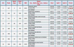 (όσοι δρομείς δεν αναφέρονται, τελικά δεν συμμετείχαν στον αγώνα ή δεν ολοκλήρωσαν τον αγώνα)