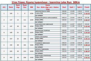 <<Με μεγάλη συμμετοχή δρομέων από όλη την Ελλάδα (1084 αθλητές τερμάτισαν στα 30Km, 51 αθλητές στο Δυναμικό Βάδην 30Km, 435 αθλητές στα 10Km κ’ τέλος 508 αθλητές στα 5Km, σύμφωνα με τα επίσημα αποτελέσματα), πραγματοποιήθηκε την Κυριακή 17/09/17 ο 11ος επετειακός γύρος της λίμνης Ιωαννίνων και οι συνοδοί αγώνες των 10km και του δυναμικού βάδην.