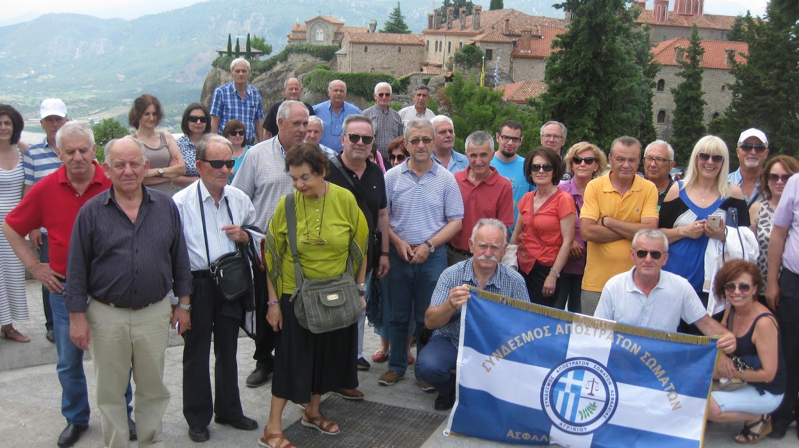 - Ο Σύνδεσμος Αποστράτων Σωμάτων Ασφαλείας Αγρινίου στα πλαίσια της σύσφιξης των σχέσεων μεταξύ των μελών του και των οικογενειών τους,πραγματοποίησαν εκδρομή σε Μετέωρα και Τρίκαλα. Την ξενάγηση ανέλαβε το μέλος του Συνδέσμου Αποστράτων νομού Τρικάλων, φίλος μας από την Ι.Ρ.Α. Νικόλαος Νταλούκας.
