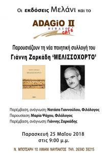 Παρουσιάζεται στη Ναύπακτο η νέα ποιητική συλλογή του Γιάννη Ζαρκάδη Μελισσόχορτο.