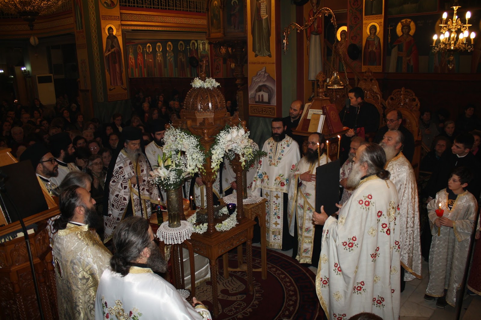 Ακολούθησε Δοξολογία επί τη αφίξει των Ιερών Λειψάνων όπου ο Σεβασμιώτατος κ. Κοσμάς, μεταξύ άλλων υπογράμμισε: «Δοξάζουμε τον Κύριο για την μεγάλη ευλογία που μας προσέφερε. Μας  χαρίζει για λίγες ημέρες αποτμήματα των Ιερών Λειψάνων των Αγίων νεομαρτύρων της Λέσβου, του Αγίου Ραφαήλ, του Αγίου Νικολάου και Ειρήνης. Ήρθαν εδώ για να μας ευλογήσουν, να μας προσφέρουν χάρη Θεού, να μας ενισχύσουν, να μας αφυπνίσουν, και να μας βοηθήσουν να ζήσουμε το στάδιο των αρετών και να αγωνιστούμε να βιώσουμε όπως θέλει ο Θεός την Αγία και Μεγάλη Τεσσαρακοστή….»