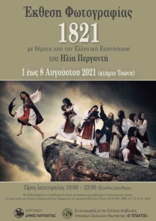 Ο Δήμος Ναυπακτίας στο πλαίσιο του Πολιτιστικού Προγράμματος για το Καλοκαίρι 2021 και τιμώντας τα 200 χρόνια από την έναρξη της Ελληνικής Επανάστασης, παρουσιάζει σε συνεργασία με το Σύλλογο Αναβίωσης Απογόνων Σουλιωτών Ναυπακτίας «Έπαχτος» τη φωτογραφική Έκθεση του Ηλία Περγαντή «1821».