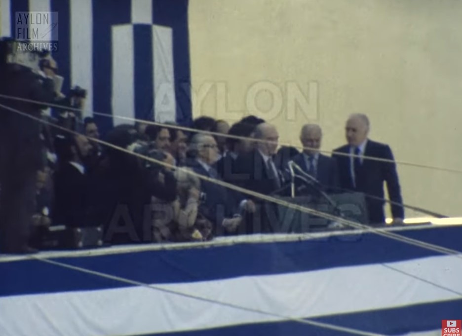 Η πομπή φτάνει στον Κήπο των Ηρώων, την Εικόνα ακολουθούν πεζή ο Ανδρέας Παπανδρέου, ο Γιάννης Αλευράς, ο Δήμαρχος της πόλης και άλλοι επίσημοι.