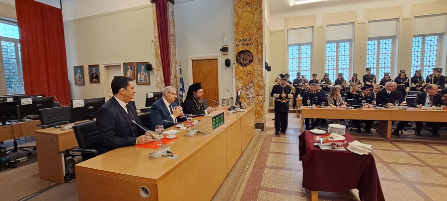 Ο Δήμαρχος Αγρινίου Γιώργος Παπαναστασίου παρουσία του Σεβασμιότατου Μητροπολίτη Αιτωλίας και Ακαρνανίας κ. Δαμασκηνού και του Γενικού Γραμματέα Εσωτερικών και Οργάνωσης, κ. Αθανάσιου Μπαλέρμπα έκοψε την Πρωτοχρονιάτικη Βασιλόπιτα στην αίθουσα συνεδριάσεων του Δημοτικού Συμβουλίου και ευχήθηκε για τη νέα χρονιά: