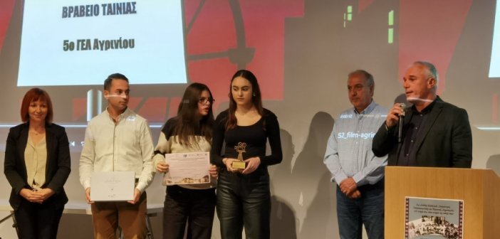 Το 5ο Γενικό Λύκειο Αγρινίου, απέσπασε το πρώτο βραβείο στην κατηγορία των Λυκείων στον 5ο διεθνή διαγωνισμό οπτικοακουστικής και ψηφιακής δημιουργίας «Η ιστορία σου, είναι η ιστορία της πόλης σου», με το ντοκιμαντέρ «Ο καπνός που… έσβησε».