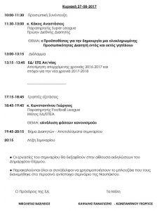 • Το Σαββατοκύριακο 26 – 27 Αυγούστου 2017 θα πραγματοποιηθεί στο Θέρμο το ετήσιο σεμινάριο διαιτησίας που φέτος θα περιλαμβάνει και κάποιες καινοτομίες.