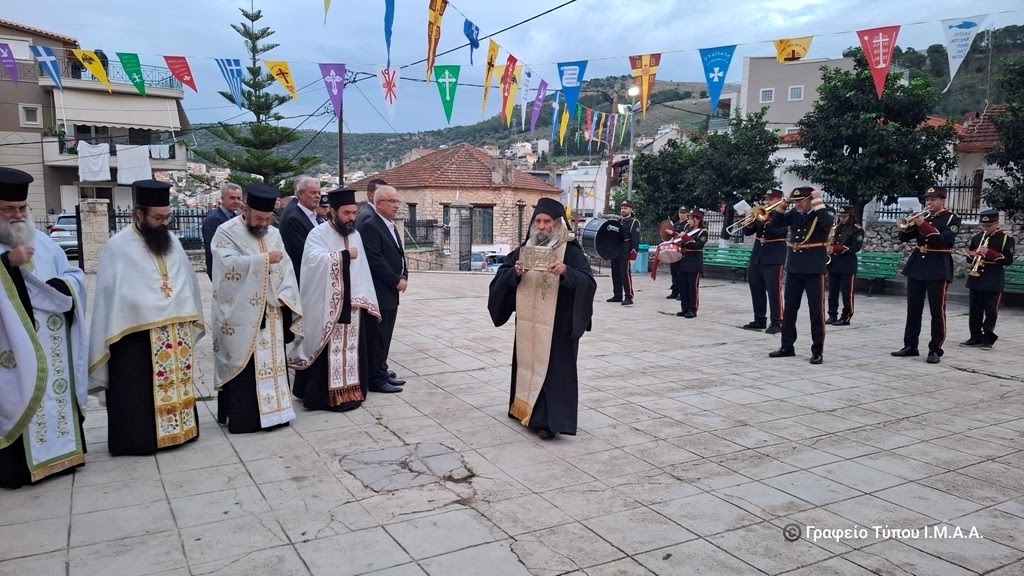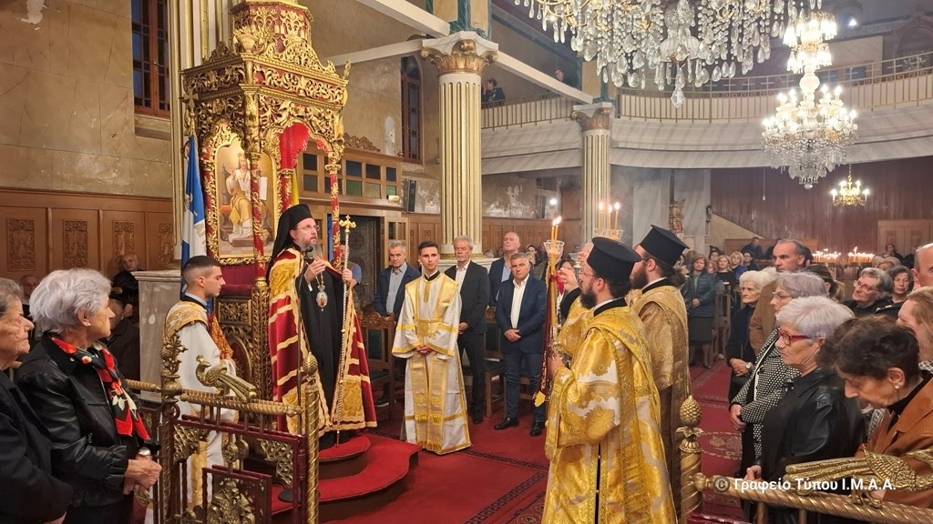 Ακολούθησε ο πανηγυρικός Εσπερινός, χοροστατούντος του Σεβασμιωτάτου Ποιμενάρχου μας κ. Δαμασκηνού, ο οποίος κατά την προσφώνησή του, ανέφερε μεταξύ άλλων ότι «τα ιερά λείψανα των Αγίων μας αποτελούν τον αδαπάνητο πνευματικό θησαυρό της Ορθοδόξου Εκκλησίας μας. Είναι η ακένωτη πηγή των ιαμάτων, η διαρκής πιστοποίηση της Πεντηκοστής μέσα στην Εκκλησία, αφού η Χάρις του Παρακλήτου σκηνώνει στους Αγίους και τους μεταβάλλει σε έμψυχους ναούς της χάριτος του Παναγίου και Τελεταρχικού Πνεύματος. Αυτή η Χάρις παραμένει και μετά την κοίμηση των Αγίων και ενεργεί τα ένδοξα και θαυμάσια, δια των ιερών και χαριτοβρύτων λειψάνων τους, στα οποία η Αγία μας Εκκλησία αποδίδει μεγίστη τιμή και σεβασμό, καθώς αποτελούν την ορατή διαχρονική παρουσία των Αγίων μέσα στην Εκκλησία του Χριστού και μέσα στη ζωή του κάθε πιστού.