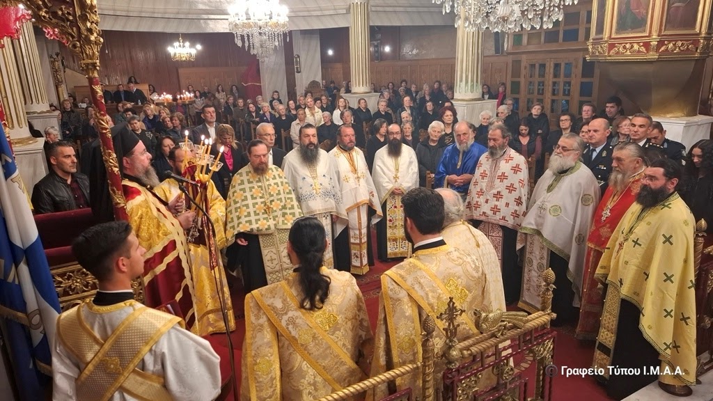 Καλωσορίζουμε τον άγιο Καθηγούμενο στην όμορφη και γραφική πόλη της Αμφιλοχίας και στον ιστορικό αυτό Ιερό Ναό του Αγίου Αθανασίου. Τον ευχαριστούμε θερμά για την άμεση ανταπόκρισή του στο φιλάγιο αίτημα του Προΐσταμένου αυτής της Ενορίας και Αρχιερατικού Επιτρόπου Αμφιλοχίας, του π. Οδυσσέως και του περί αυτόν Εκκλησιαστικού Συμβουλίου, αλλά και για τους κόπους στους οποίους υπεβλήθη για την μεταφορά της Αγίας Κάρας.
