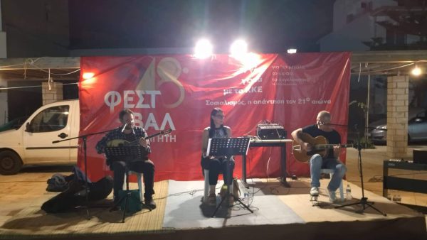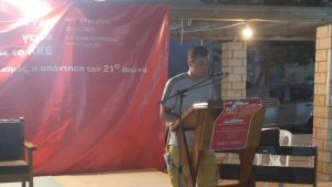 Χαιρετισμό απεύθυνε, ο Λεωνίδας Καραγεώργος, εκ μέρους της ΚΝΕ, για να ακολουθήσει ομιλία, από τον Γιάννη Καρναβιά, μέλος του Γραφείου της ΤΕ Αιτωλοακαρνανίας του ΚΚΕ, όπου αφού αναφέρθηκε στο σύνθημα του Φεστιβάλ, στα μηνύματα που μεταφέρει 70 χρόνια μετά και την εκτέλεση του κομμουνιστή – ήρωα Νίκου Μπελογιάννη, μεταξύ άλλων, σημείωσε: «Σ’ αυτόν τον αγώνα είναι οι κομμουνιστές μπροστά κάθε μέρα. Σ’ αυτόν τον αγώνα καλούμε τη νέα γενιά να παλέψει και να βαδίσει. Να συμπορευτεί με το ΚΚΕ και την ΚΝΕ για να βρουν συνέχεια τα μεγάλα αγωνιστικά στιγμιότυπα όλου του προηγούμενου διαστήματος, που σχημάτισαν το χαμόγελο στα χείλη μας, γέννησαν την ελπίδα, έσπασαν στερεότυπα και έβαλαν περισσότερους νέους ανθρώπους να «στήσουν αυτί», να εμπιστευτούν και να αναγνωρίσουν τη δράση του ΚΚΕ και της ΚΝΕ. Παράδειγμα, εδώ στην περιοχή σας, η μάχη που έδωσαν οι κάτοικοι με τους κομμουνιστές μπροστά ενάντια στην ΠΟΑΥ».