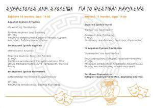 Με πρωταγωνιστές τους μαθητές του Δήμου μας αλλά και μαθητές από το Αγρίνιο θα έχουμε την ευκαιρία να ταξιδέψουμε στο μακρινό παρελθόν και να γνωρίσουμε τους μυθικούς ήρωες της Αιτωλίας και τα κατορθώματά τους, τις περιπέτειες του Οδυσσέα, τον μύθο της Πανδώρας και έργα του Αριστοφάνη. Την καλλιτεχνική επιμέλεια του φεστιβάλ και τη σκηνοθετική διδασκαλία των μαθητών έχει αναλάβει ο θεατρολόγος Δημ. Σιούντα με τη βοήθεια της κας Ευθ. Σταυρογιαννοπούλου.