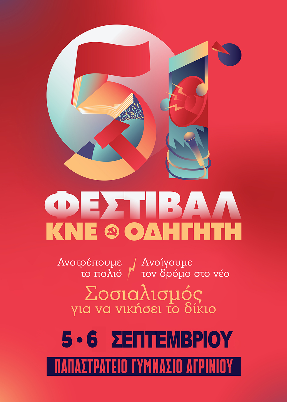 Με σύνθημα «Ανατρέπουμε το παλιό, ανοίγουμε τον δρόμο στο νέο. Σοσιαλισμός για να νικήσει το δίκιο!», κορυφώνονται οι εκδηλώσεις του 51ου Φεστιβάλ ΚΝΕ-ΟΔΗΓΗΤΗ στην Αιτωλοακαρνανία, με τις εκδηλώσεις στο Αγρίνιο που πραγματοποιούνται το Σάββατο 5 και την Κυριακή 6 Σεπτέμβρη, στο Παπαστράτειο Γυμνάσιο, με τις πύλες να ανοίγουν στις 9μμ.