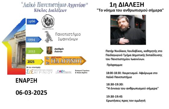 Την Πέμπτη 6 Μαρτίου και όχι στις 27-02 ξεκινά το Λαϊκό Πανεπιστήμιο.