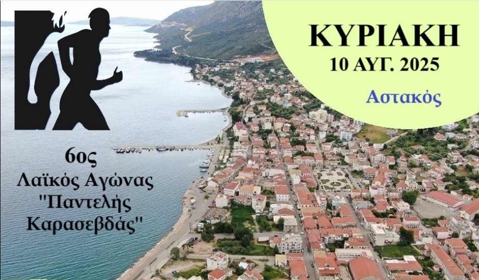 Ο Δήμος Ξηρομέρου, η Κοινότητα Αστακού, ο Σύλλογος Απανταχού Αστακιωτών και ο Σύλλογος Γυναικών Αστακού, συνδιοργανώνουν την Κυριακή 10/08/2025, τον 6ο Λαϊκό Αγώνα Αστακού «Παντελής Καρασεβδάς» στην πόλη του Αστακού.