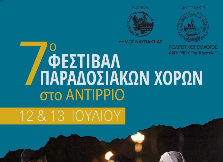 Ο Πολιτιστικός Σύλλογος Αντιρρίου «Το Καστέλι», σε συνεργασία με τον Δήμο Ναυπακτίας, διοργανώνουν το 7ο Φεστιβάλ Παραδοσιακών Χορών την Παρασκευή 12 και το Σάββατο 13 Ιουλίου 2024 και ώρα 21:00’ μ.μ. στο αμφιθέατρο του Αντιρρίου (πλατεία Χορμόβα).