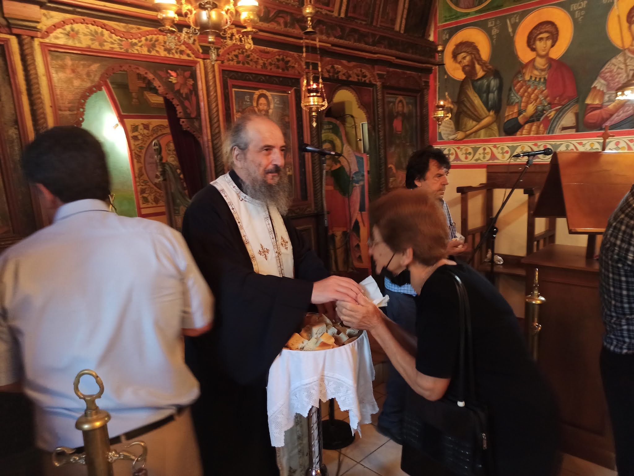 Μετά το τέλος της Θείας Λειτουργίας προσφέρθηκε κέρασμα στον αύλειο χώρο του ναού.